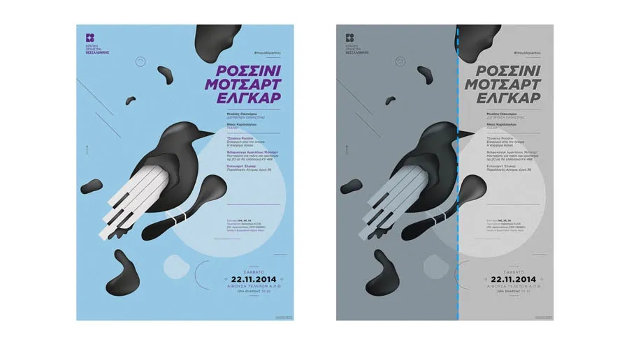文案擺放在版面的對(duì)角線方向,一方面避免了司空見慣的居中版面,一方面給中心主體留出了更多的創(chuàng)作空間;另外中心的圖形也可以是對(duì)角線的設(shè)計(jì),這樣會(huì)讓整個(gè)構(gòu)圖看起來(lái)比較平衡。
