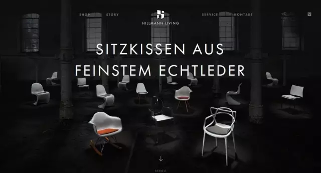 Hillman Living 的首頁(yè)采用了一張看起來(lái)略顯荒涼單調(diào)的圖片來(lái)營(yíng)造冷峻的氛圍,同時(shí)用顯眼的暖色調(diào)來(lái)點(diǎn)綴,與整體的氛圍構(gòu)成對(duì)比,緊緊抓住用戶(hù)的注意力,讓用戶(hù)注意到圖中獨(dú)特的椅子。