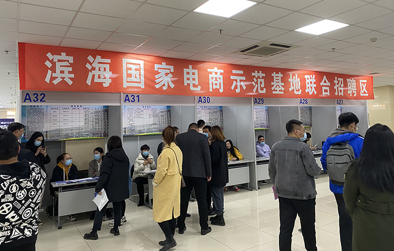 錦州濱海國家電子商務(wù)示范基地(簡稱:“濱海電商基地”)作為我市優(yōu)秀企業(yè)參加本次招聘會,并聯(lián)合市人社局利用“BHDS”官方抖音號為本次招聘會提供線上“云招聘”全程直播服務(wù)。同時,攜入園企業(yè)在招聘會現(xiàn)在設(shè)置聯(lián)合招聘區(qū),不僅為錦州軟件開發(fā)企業(yè)提供人才資源服務(wù),也為更多畢業(yè)生提供了豐富的崗位,現(xiàn)場可謂人頭攢動,前來求職問薪、登記報名的求職者數(shù)不勝數(shù)。