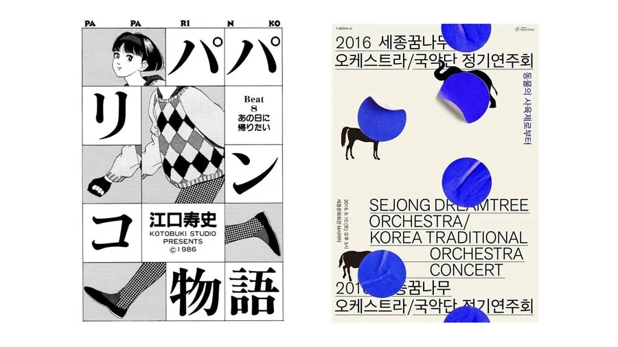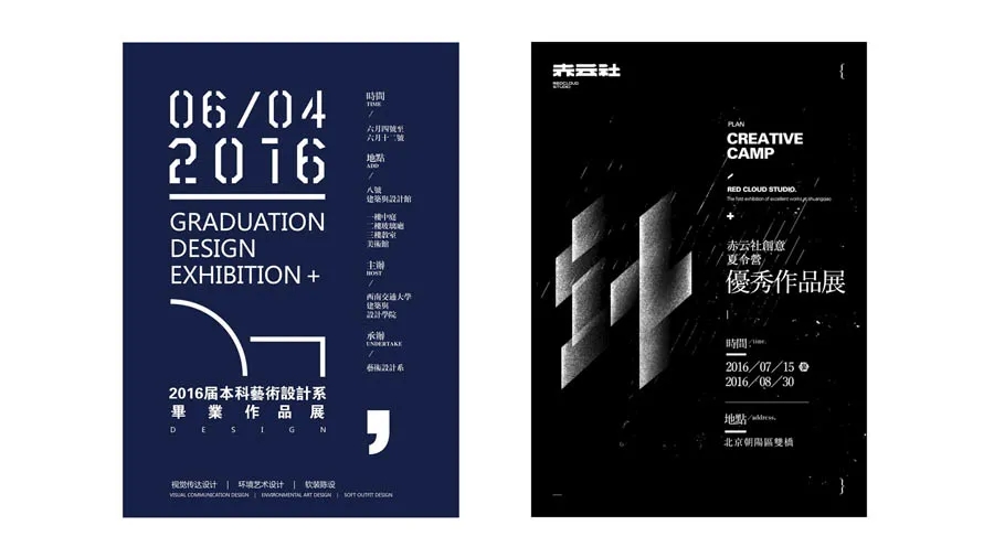 左邊的海報(bào)采用了矩形構(gòu)圖,右邊的海報(bào)采用了二分構(gòu)圖,但是文案都是找到了一條明確清晰的對(duì)齊線,這樣讓版面產(chǎn)生了秩序美。