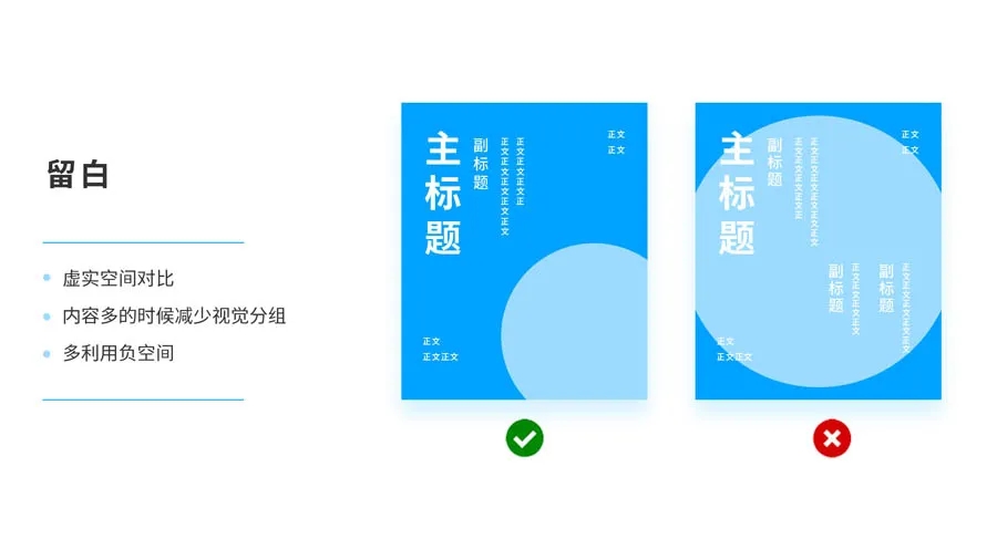 留白是虛實(shí)空間對(duì)比的作用。適當(dāng)?shù)牧舭啄茏岉?yè)面透氣,有呼吸,給人舒適感。大量視覺(jué)信息堆砌時(shí),每個(gè)元素都要經(jīng)過(guò)眼睛掃描,大腦處理,當(dāng)找不到重點(diǎn)的時(shí)候用戶眼睛和大腦容易疲憊。在內(nèi)容比較多的情況下,盡量在視覺(jué)上減少視覺(jué)分組;另外,多利用負(fù)空間創(chuàng)作一些巧妙的負(fù)空間。